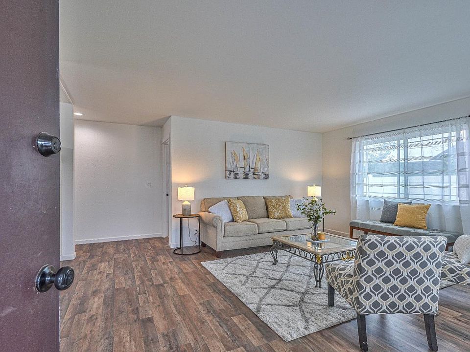 Tucked on a quiet established side street in N. Salinas & conveniently located within walking distance to schools, shopping and medical services is the home you have been waiting for! This sweet 3 bed, 2 ba. home is ready for new owners with its freshly painted exterior and interior & new vinyl flooring & carpet installed throughout. The beautifully remodeled bathrooms in crisp black & white have a contemporary look and feel. The charming primary suite is designed for rest and relaxation w/ a fireplace, jetted tub & walk in shower. Located between the LR and FR, you'll find a spacious eat-in kitchen ready to serve the needs of the home chef. The brand-new composition roof and gutters installed earlier this year will provide many years of peace of mind for the new owners and the energy efficient solar panels will help keep the electric bills in check. The large backyard, with a new back patio off the primary suite, is a blank canvas ready to become an outdoor oasis for all to enjoy!