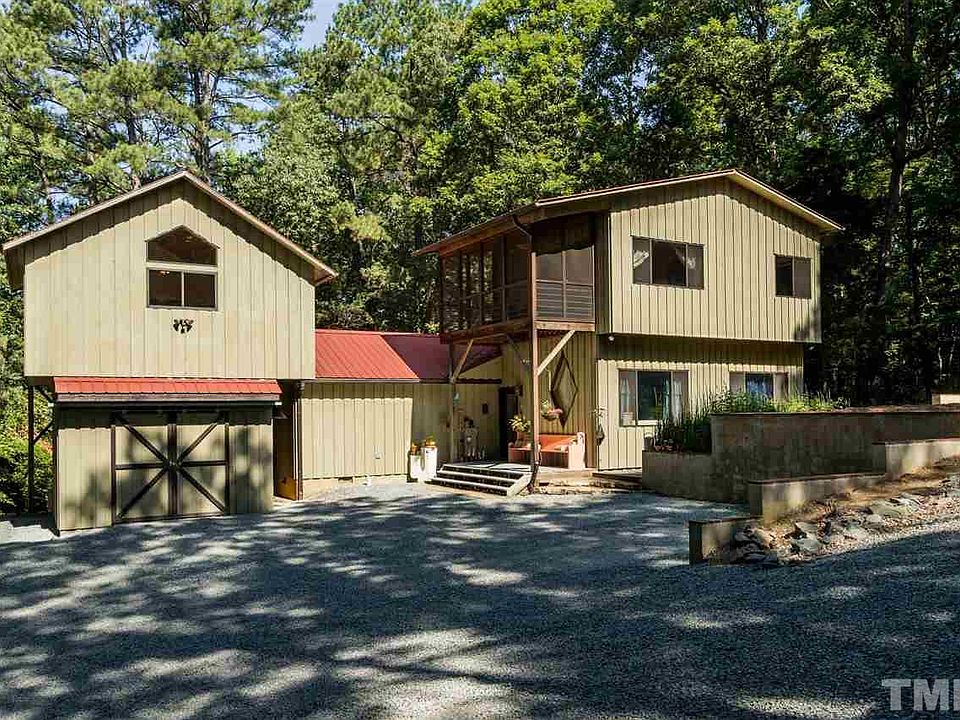 Showing for backup offers. WATERFRONT HOME w/ acreage in Redbud w/ 3 bedrooms, Flex rm & 4 full baths. Two owner's suites, both w/ luxurious bathrooms & a detached, private studio w/ deck, full bath & kitchenette. Custom kitchen w/ one of a kind cabinets, vaulted ceiling & gas range. Spacious living rm featuring custom stone fp. Brick, hardwood & tile floors throughout, huge screened porch & views of pond. Partially fenced 5 acres w/ several custom buildings, garden area & security gate. See documents.