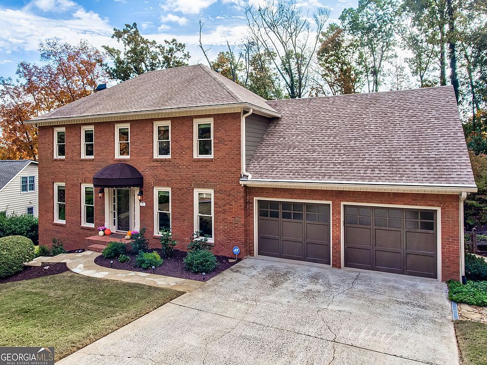 Gorgeous, newly renovated brick and cement siding home, 3 bedrooms upstairs, with 4th bedroom in finished portion of basement. Huge bonus room over garage, which easily converts to a 5th bedroom. Home boasts a beautifully renovated kitchen with Dacor and KitchenAid stainless steel appliances, granite countertops, tile backsplash, complete with under-counter lighting, and soft-close cabinets. This eat-in kitchen also includes large pantry cabinets with drawers. 2.5 baths are all fully renovated with granite countertops. Separate shower and jetted tub in primary bathroom with double vanity. This beautiful home features an entrance foyer, library/office space, dining room, and breakfast area that opens to a large family room with a custom stone fireplace with remote controlled gas logs, glass doors and flanking built-in bookcases. Custom walnut hardwood floors cover the main level, upper bonus room and upper hall. Whether you use the front or back staircase, it will lead you to an oversized primary bedroom, with two large additional bedrooms and bonus room. The basement features two finished rooms (4th bedroom) with built-ins and engineered hardwood. Plenty of storage in large, unfinished portion of basement (with recent HVAC venting added). The covered upper deck overlooks a professionally landscaped, fenced backyard, complete with stone walkways and tranquil fountain. At the terrace level is a covered Endless Pool/exercise spa with built-in treadmill and swimjet (installed new in 2021), as well as a new privacy-walled open deck area for outdoor dining and entertaining. Newer roof, HVAC/furnace, water heater, paint, and light fixtures. This home is a very well cared for stunner in a fantastic Cobb County school district, with nearby school-choice options as well! [rental restrictions]
