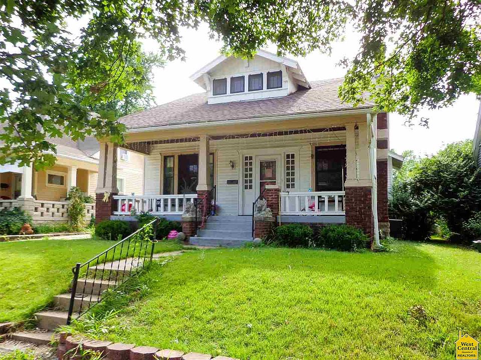 Large story and 1/2 turn of the century home with lots of character. 9' ceilings, hardwood floors and ceiling fans throughout. Dinning room with bay window and window seat, Large kitchen has upper cabinets doors with built in glass panels inserts. Laundry room is on the main floor but also has hookups in basement. Sun room off of kitchen could be used for breakfast room. Main floor bedroom and large open second level with full bath, could be master bedroom of could be divided into multiple bedrooms. Full bath on the main floor and full bath in the basement. Basement could be family room or another bedroom. Architectural shingle roof, vinyl siding and 1 car garage. Forced air gas heat, central air, 200 amp breaker box and new wiring. Good house for the money.