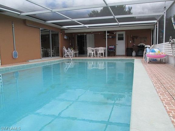 Here's the Pool Home that you've been waiting for. Well maintained 3 bedroom, 2 bath home with a Huge swimming pool that you're sure to love. Pool is heated and screened for year round enjoyment. Lots of recent updates for your peace of mind. Air-conditioning replaced in 2010 including new duct work. New exterior paint. New thermal pane windows. New pool heater in 2014. Pool enclosure has just been rescreened. New hurricane rated garage door. Ceramic tile flooring throughout living area, pool deck and lanai. Only the bedrooms are carpeted. Central water and sewer with all assessments paid. Conveniently located in SE Cape Coral west of Del Prado Blvd. Motivated seller has price home to sell so don't wait to see this one or it'll be gone.