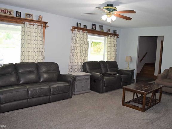 Welcome to the country! This property has a long private drive to 5.2 secluded acres close to I-94. Come sit on the porch swing and enjoy the fruit trees. This home has a freshly painted exterior, all new windows and doors, a new roof, and new carpet. 5 Bedrooms and 3 Baths with the master on the entry level. Walk outs off of upper level bonus rooms. Above ground pool with patio and two tier deck. Custom stamped concrete surrounds the home and an exterior wood burner keeps heating costs low. Burnpit and tire swing. 24X56 garage with heat and electrical work shop.