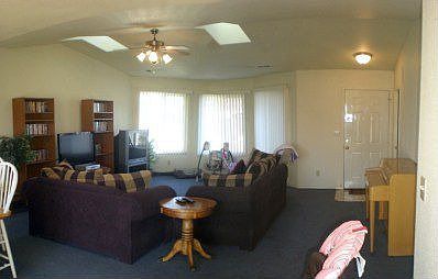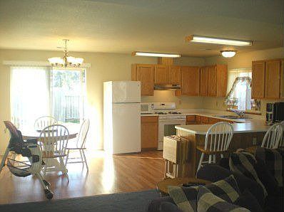 Wide open living room and kitchen, complete with vaulted ceilings, skylights, and a bay window, invite friends and family to relax and enjoy each other. Flow out into the large back yard for barbeques or playing with the kids or pets. Or retreat to the large master bedroom for some rest and privacy. The tiled master bath has dual shower heads! Great fun! Move in ready!