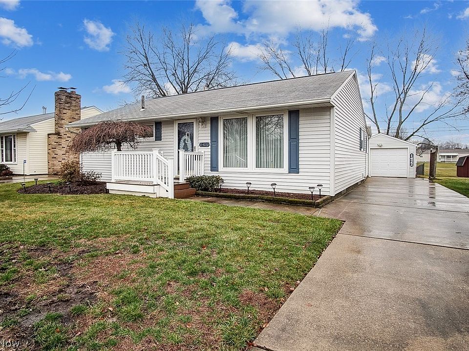 This well constructed and adorable West Manor home has been lovingly cared for by the same family for over 60 years! Whether you are just starting out or downsizing, this Perry ranch is a must see! The exterior features low-maintenance vinyl siding & windows, a composite front porch and an oversized 1 1/2 car garage. The flat backyard offers manicured landscaping with perennials, a vinyl privacy fence at the back of the yard, a deck, patio space and storage shed. Inside you will find 3 bedrooms, 2 full bathrooms, living room, first floor family room, a finished basement, quality oak trim and oak interior doors throughout. You will love the eat-in kitchen, which is open to both the living room and family room. The kitchen has been updated with high-quality, custom oak Kraftmaid cabinets and features a Koehler, twin-basin sink, ceramic tile backsplash, and modern laminate flooring. There are hardwood floors under the carpeting in the hallway, living room and all bedrooms. The coz