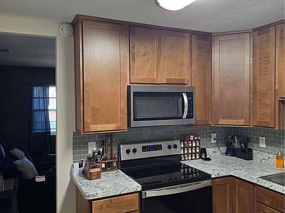 Wood privacy fenceUpdated bathroomPatio in backyardCarpet in bedroomsNewer appliancesNewer cabinetsCustom tile
