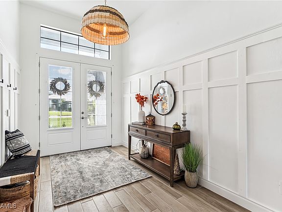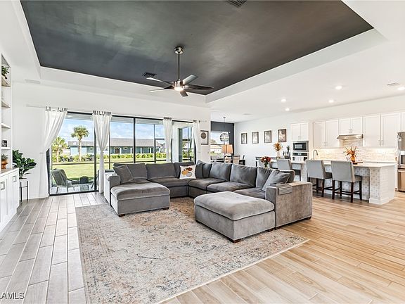 Welcome to your dream home! NO FLOOD INSURANCE NEEDED!! This newly constructed, almost 2,700 square foot 3 Bedroom+ Den, 3 Bathroom property perfectly blends luxury, comfort, and modern design. Walk into a Custom Board and Batton entryway and enjoy an expansive open floor plan with a Custom Entertainment wall in the living room that seamlessly connects the living, dining, and kitchen areas, perfect for entertaining family and friends—situated on a spacious one-acre lot in the desirable Fort Myers area. Quartz countertops, Backsplash, and a large center island are ideal for meal prep and casual dining. A generous backyard with a live privacy fence is perfect for outdoor living, with ample space for a pool, garden, or recreational activities.