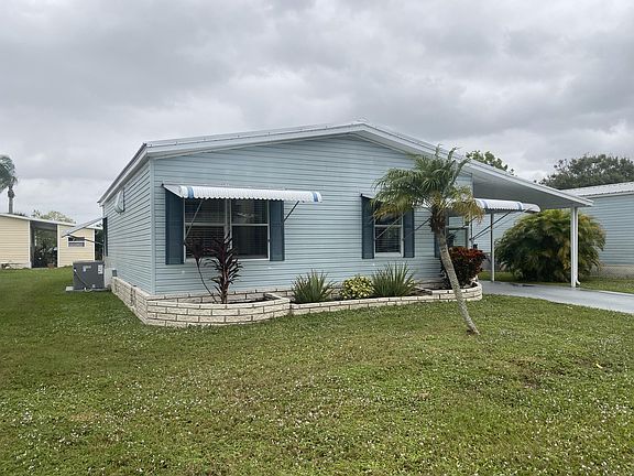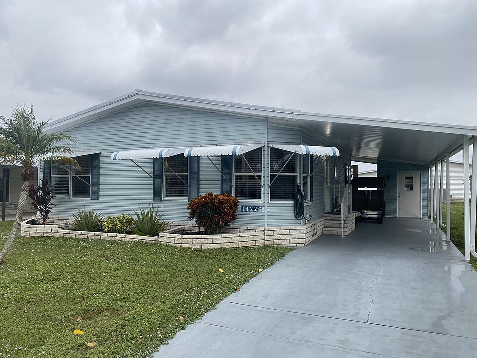 Ready for new owner, we can close whenever you are ready!!! Do not miss this Immaculate fully furnished home, with brand new metal roof installed in 2022, Newer AC (2022) & home is equipped with metal hurricane shutters. This home has been loved & cared for by seasonal owners for the last 5 years, both bathrooms have been updated and the kitchen has had some updating too including a new farmers sink and new appliances . Small amount of carpet in the bedrooms and living room that was installed 2 years ago(but looks brand new) gives the home a cozy warm feel, the rest of the home has a gray laminate flooring which compliments the overall modern look of the home. There is a large rear porch with windows & screens to enjoy the beautiful Florida weather, as well as a very large carport with plenty of driveway space for multiple vehicles. Home was manufactured in 1992 and comes with a water filter system in the home. Spanish Lakes is a 55+ community with so much to do a private 18 hole golf course with no fees to play, 2 heated pools, pickleball, tennis, bocce, shuffleboard, gym, workshop, baseball field, arts and crafts, security on site, and so much more! Water facility on site for just $278 for the whole year! Buyer can assume the current owners lot rent of $540.27 until May of next year!
