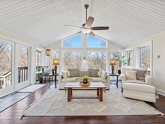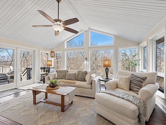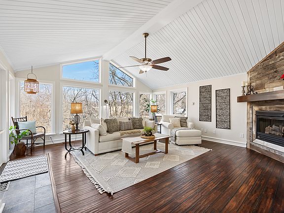 Back on the market, second chance opportunity to purchase this gem! Cross the waterfall over the bridge and welcome to your private oasis on the edge of Bloomington in the Royal Oaks Subdivision. This stunning 4-bedroom, 3-bathroom home offers a lake view, and an abundance of natural light, highlighted by the 4 seasons room with expansive windows. During the winter time relax in the comfort of 3 fireplaces. The home boasts multiple outdoor spaces, including a spacious back deck, a covered porch, and a brick patio-perfect for enjoying time with family or friends. Located within the Unit 5 school district, this exceptional property is eagerly awaiting its new owners. The entire home was professionally painted in 2025. Other updates to the property include new carpet (2025), new windows (2021 excluding cathedral room), kitchen remodel (2018), primary bathroom remodel (2018), and garage doors (2020). The steel roof is a 50 year roof ensuring long-lasting peace of mind.