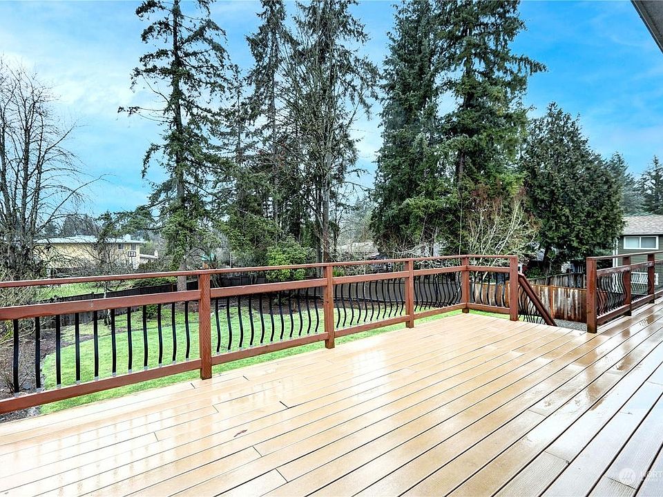 - oversized deck off dining room overlooks expansive, flat, fully-fenced backyard;
