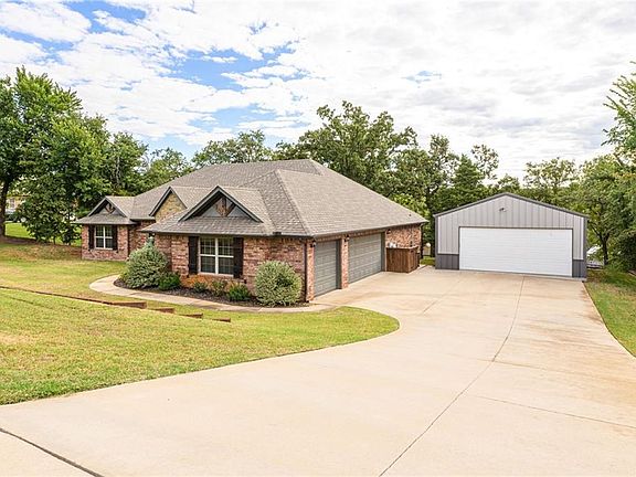 THE WAIT IS OVER // This beautiful home is located in east Edmond and on 3/4 acre with mature trees and a LARGE shop. With over 2,000 square feet, this home offers three large bedrooms, an office, a 3 car garage with in ground storm shelter, sprinkler system, whole home gutters and so much more. The kitchen has granite countertops, stainless appliances and large windows over looking the backyard. This home has been impeccably maintained! The neighborhood offers convenient access to I35 plus has a neighborhood park. If you have been waiting for a home with a shop, the wait is officially over. Schedule your showing today!