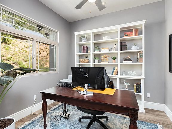 **Price reduced by $105,000!**Sellers Motivated**This beautifully updated single level custom estate with gorgeous VIEWS is located within the highly desirable gated community of Ridge Ranch in Valley Center, just a few minutes away from Escondido and I-15. Situated on a private cul-de-sac on 5.97 acres, this amazing dream home features custom finishes including 40 panels of owned solar, neutral paint, 8” baseboards, newer water heaters and kitchen appliances, high-end chandeliers and light fixtures, recessed lighting, a central vacuum, two cozy fireplaces, and new waterproof LVP flooring throughout. Soaring ceilings with an open floorplan and large new windows bask the home in an abundance of natural light. Perfect for entertaining large parties or simply relaxing while enjoying the picturesque quiet environment.