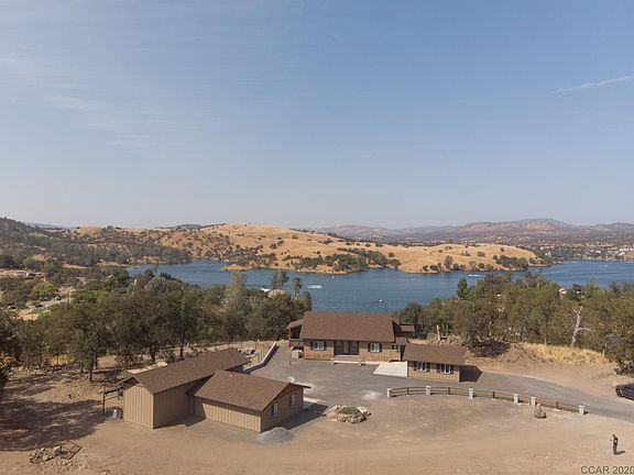 Single level living with a Fabulous view of LAKE TULLOCH. (You don't find this very often). Social distancing on just under 9AC of mostly useable property. An added bonus is your very own designated boat slip at the common area in Black Jack Bluffs. Lake Views from all rooms! Kitchen offers granite counter tops, granite composite sink and tile back splash. For your convenience soft close cabinets & drawers were installed. A fabulous granite custom large island that seats 6 will come in handy for your entertaining. Appliances include Samsung dual oven and a 4 door Samsung fridge with bottom freezer. The 72 inch ceiling fans in both Kitchen and Living Room are the BOMB! Flooring throughout is a laminate with a 24 hour water timeframe before any damage. Master Bathroom shows off a double granite vanity with soft close drawers, large tiled shower with bench and a large soaker tub. In the guest bathroom you will enjoy the tiled shower, tile wainscot, clawfoot tub and access door leading out onto the deck. Mini splits throughout the entire home with individual controls for both heating and air conditioning. The outdoors continues to offer much more.....3/4 wrap around deck with sunshades, RV Barn with full 50 amp hookups & dump station, enclosed fenced garden area, Large 2 door workshop and a 2 car garage. The wildlife will give you many hours of enjoyment and the gorgeous skies, so much peace and tranquility.