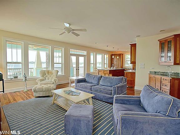 Beautiful custom built home on 69ft of waterfront in Perdido Key. Plenty of privacy, sitting 400+ ft from the road. This home features top of the line appliances, 5- burner gas cook top, granite counter tops, tumbled slate and glass tile back splash, custom cherry cabinetry in kitchen, Brazilian teak floors. Enjoy the sunsets from the patio off of every floor. There's plenty of room for the whole family and guest with two bedrooms off the main floor, each with private bathroom + private studio apartment downstairs. This unique master bath has a large walk in closet, Italian tile, custom cabinetry and has an indoor and outdoor shower. This fabulous property would make the perfect primary or vacation home.