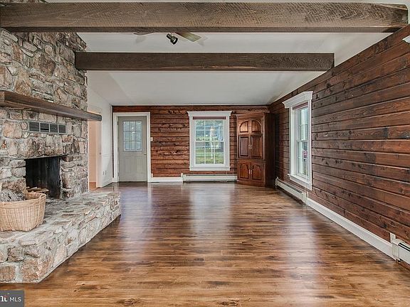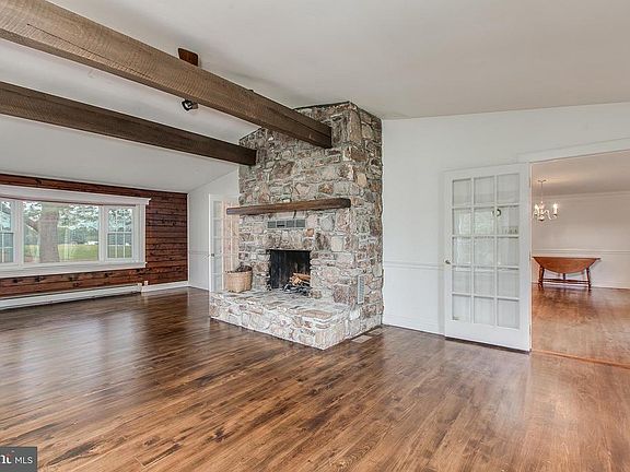 Beautiful and well cared for house offering HWF throughout, 4 Bed, 2 1/2 ba. Family room with cozy woodburning fireplace, log walls and beam ceiling. Spacious kitchen with SS appliances and fireplace. Built-in cabinets, crown molding, chair railing, recessed lighting, central vacuum, and more. Screened in porch, landscape,20 assorted fruit trees,det 4 car garage, shed, lots of privacy 2.96 acres.