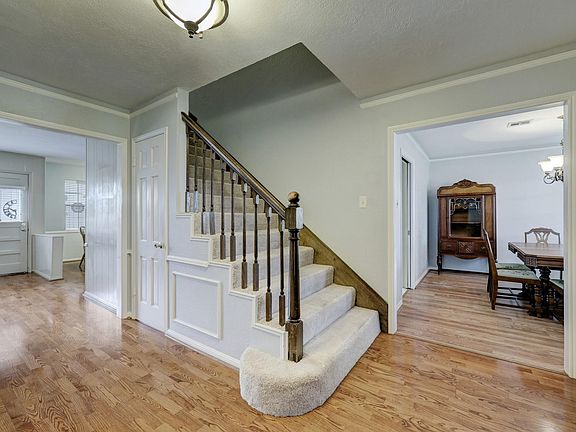 Wonderfully maintained Nottingham Forest home on a beautiful corner lot on a cul-de-sac street. Great floor plan with 4 bedrooms, 2.5 baths, primary bedroom down, formal dining room and formal living room. Clean and well maintained with large bedrooms, spacious living areas, great storage and sizable closets. Options for a stunning remodel could include additional square footage by enclosing already framed out breezeway and a great option for adding a third bath room upstairs. Large, private back yard with patio, covered outdoor area and pecan trees. Great curb appeal with covered front porch, large corner lot with gorgeous oak trees and lush landscaping.