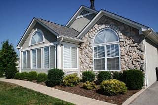 East-end Patio home in move-in condition. Walls and carpet are neutral. Enjoy beautiful light streaming in through 3 palladium windows. Vaulted Sun Room with ceramic tile floors, six sets of double windows and zoned heating / AC. Vaulted Great Room with Fireplace. 2 Master Bedrooms, each with an attached full bathroom and walk-in closet. Large dining area. Eat-in Kitchen with Oak Cabinets and all Appliances. All on one floor, easily accessable for handicaped. 2 Car Garage.