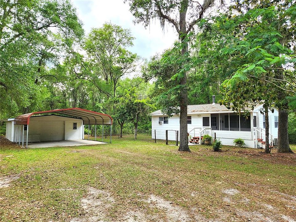 This well maintained 3/1 backs up to the Ocala National Forest for added privacy and easy access to miles of trails for your enjoyment. Walking distance to the community boat ramp on the Ocklawaha River for fishing and boating. Updates include new kitchen cabinets and countertops, new vinyl plank flooring in the kitchen and living room, new mini split ac/heat unit, new roof in December 2022. Fireplace in living room, inside laundry room with washer/dryer included, screened porch, fenced area for pets. Freshly painted and move-in ready. Appliances, furniture, kitchen items, etc included - Perfect for weekend getaways. 2 car carport plus enclosed garage/workshop provide plenty of space for your ATV, boat and other toys. Hunting, fishing, boating and trails nearby - Great location for outdoor enthusiasts!