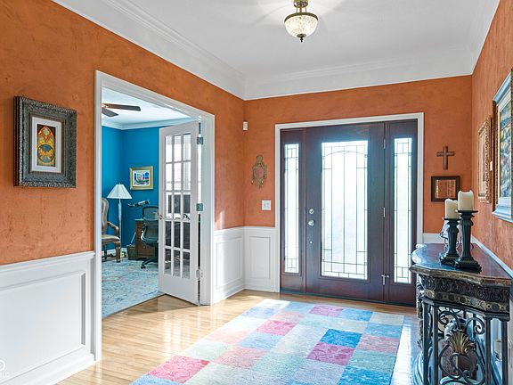 **Welcome to Your Dream Home in Cherry Creek Estates!** This stunning 4-bedroom, 3-full-bath ranch-style home offers unparalleled comfort and luxury, featuring a fully finished basement and modern updates throughout. Enjoy the elegance of a large great room with a cozy wood-burning fireplace and an adjoining sunroom that's perfect for relaxation or entertaining guests. The well-appointed kitchen is designed for both style and functionality, boasting stainless steel appliances, a breakfast area, a breakfast bar, and a butler's pantry. A spacious laundry room with ample storage and an office with French doors off the foyer add to the home's practicality and charm. The full finished basement is a highlight, featuring an open theater room with built-in cabinets, a wet bar, and a fourth bedroom with egress windows. Vinyl plank flooring and plenty of storage options complete this versatile space. Enjoy surround sound throughout the home, a new concrete patio with an included hot tub, and a retractable awning over the patio for year-round comfort. The wrought iron fenced backyard, surrounded by mature trees, offers both privacy and a touch of nature. Don't miss out on this beautifully updated home with all the amenities you could desire. Seller is willing to negotiate buyer concessions.