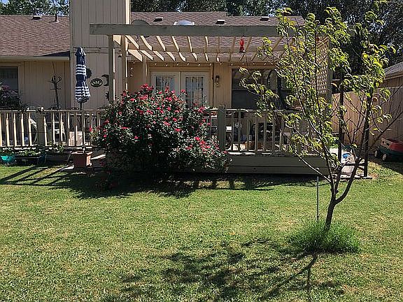 Searching for the perfect home? Search no further! Spacious living area w/vaulted ceilings, fireplace and a skylight along with french doors allows an abundance of natural light. Lrg primary suite w/vaulted ceilings, all rooms are very spacious offering large walk in closets. New engineered hardwoods, some new windows, new utility shed, amazing outdoor deck with a bar setting area and tons of room for entertaining are a few features your new home offers!