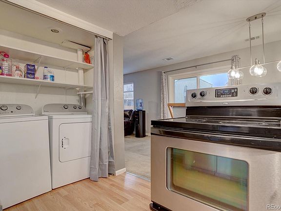 Enjoy living in this spacious 1/2 Duplex with no HOA fees or regulations. Three bedrooms and 1.5 bathrooms, large living room and kitchen, remodeled with new laminate flooring through most of the home. One of the largest yards in the neighborhood, fully fenced. Perfect for enjoying Colorado's warm summer nights lounging on the back patio. One car attached garage that is a finished space, with extra room for storage, bikes etc. Convenient central Aurora location, close to shopping, schools, parks and more! Updated and move in ready. Seller is an electrician so all lighting has been updated with high end finishes.