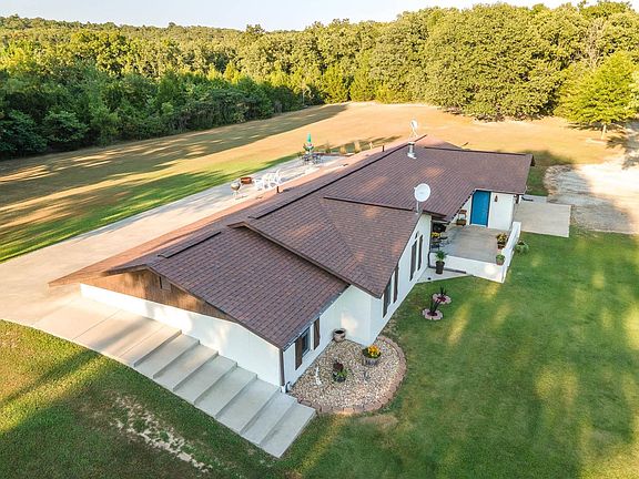 It's not often a property like this one is available for purchase. This 2017 sqft earth contact home with 4B/2.5B and office is crisp, clean, well maintained and energy efficient. A dedicated entry welcomes you to a living room with a two-sided fireplace that's fed from the garage and keeps it warm. The dining and kitchen area are joined for easy conversation. A family/craft room completes the far end of the house. The other end is complete with master suite and 3 other bedrooms and office. Sitting on 21.32, close to town, the property also has a pole barn, well house, root cellar and a two story 600 sqft m/l recreation/guest house with electric, and AC/baseboard heating. The entire private drive is owned by the homeowner. Secluded with perimeter forest but open pasture in the center, the sunsets are amazing. New windows installed 2020. Roof replaced 2009. Outside paint 2019. New garage door and opener. There's a 2000 sq ft party patio up top. This country retreat is move in ready.