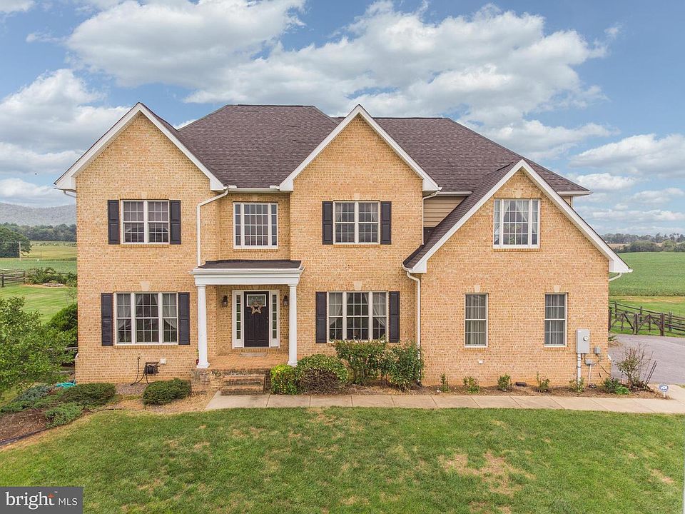 HIGHEST AND BEST BY, 9/17 10am. Beautiful Brick front Colonial on 1.3 acres. Soaring 2 story foyer, formal dining room with tray ceiling, living room. half bath, family room with gas fireplace open to kitchen (newer stainless steel appliances) with double wall oven and granite countertops and island. The upper floor offers 4 bedrooms including a large owner's suite with walk-in closet and a balcony to enjoy the breathtaking mountain views. The primary bath has a jetted tub, double vanities, and linen closets. Two more bathrooms (one jack and jill) and laundry on the upper level as well. Partially finished basement with finished full bath. Large fenced back yard with in-ground pool with liner, large composite deck, shed, outdoor boiler. Side entry two car garage and long driveway. New HVAC being installed ( 2021). Don't miss out on this one, you will want to make this your home!