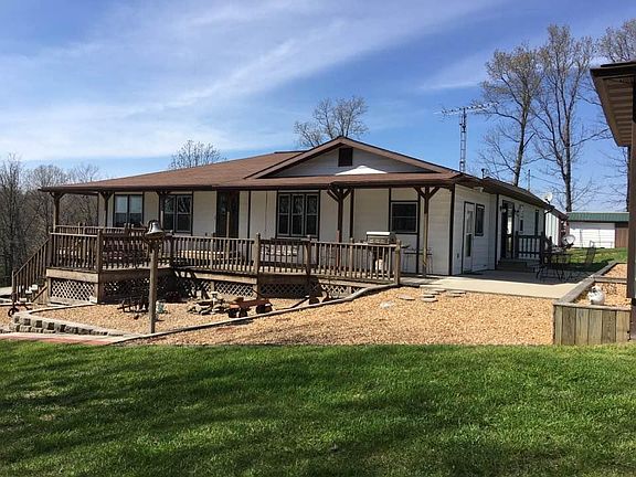 Don't underestimate this place! This lovely, custom home was placed in a tremendous spot a'top an Ozark Mountain overlooking Cabool! Daytime views AND nighttime views! As you approach, you'll notice how nicely the home & grounds are kept. Not a weed nor rock out of place. Enter the home & you'll note the same! Classic,custom wood every where! Floors, cabinets, built-ins & more! Attention to detail is clear, here! Take in the view in the large living room. Mingle in the dining room, sit at the bar or gather in the beautiful, custom kitchen. The master bedroom takes in the view while the other two (nice-sized) bedrooms & bath are in the rear. The outbuildings are very nice! 220V, concrete in some, a space for every one of his gadgets!