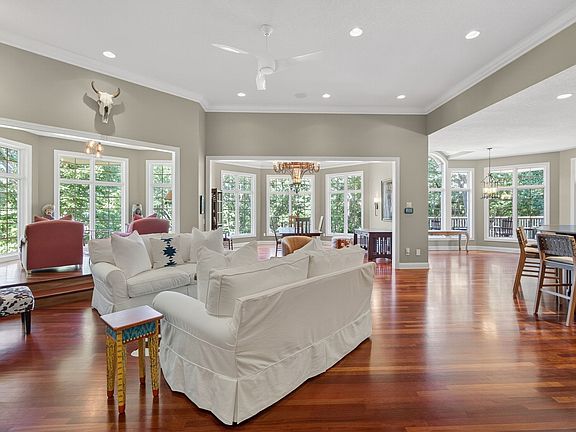 RARE FIND! Expansive 3-4 bed RANCH on PRIVATE, WOODED CUL DE SAC LOT! Custom-built with 3,000+ sq ft on main level & nestled on 0.78-acre walkout lot backing to heavy trees—an incredibly private setting in the tucked away luxury of Rosemont Estates. OPEN FLOOR PLAN perfect for entertaining. QUALITY CRAFTSMANSHIP- 8’ solid core doors throughout entire home, Brazilian cherry hardwood floors, grand curved wood & iron staircase. CHEF’S KITCHEN– custom cabinetry, equipped w/ gourmet appliances (Thermador, Dacor, Bosch) including a 6-burner gas range, double ovens, warming drawer, ice machine (2024), refrigerated drawers & WALK-IN PANTRY. The main level provides options for arranging furniture & living options - Casual & formal dining options, an office/study set just off spacious foyer, reading nook & solarium w/ cathedral ceiling overlooking the lush yard & trees. MAIN FLR PRIMARY SUITE w/ large walk-in shower & walk-in closet. WALKOUT LOWER LVL offers 2 more bedrooms, flex room w/ cork floor for home gym/2nd office or potential 4th bedrm, large wet bar, 4-season rm, family rm w/ fireplace, cedar-lined storage rm & HUGE unfinished storage area. Outdoor living shines here—covered flagstone patio w/ hot tub, fire pit, Ipe deck off kitchen & extensive landscaping. Recent updates - exterior paint (2024), HVAC (2020), newer appliances, New whole-home Honest water filtration system & more. GEOTHERMAL HEATED GARAGE! Great location–quick access to interstate, shop/dine, medical & DMGCC.