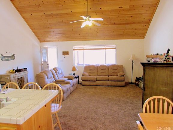 Single level cabin that could be your perfect mountain getaway! A charming light and bright home with a wonderful great room that has a vaulted knotty pine ceiling and a real fireplace with stone hearth. A sliding door between the eating area and kitchen leads to the back deck and National Forest- a perfect place for a BBQ and relaxing with a cold drink. You'll appreciate the convenience of no stairs to get to the master bedroom with full bath, second bedroom and the 3/4 hall bath. Kick back on the covered front porch in any weather and enjoy the gorgeous San Emigdio Canyon views and in the winter marvel at the softly falling snow. Under the home is a large storage area for all those lesser used items and the concrete driveway is practically level with a separate parking pad. The lot is extra large at over 1/3 acre with a vacant lot on one side and Los Padres National Forest behind and across for exceptional privacy. This is a really attractive home priced to sell quickly so please come see it soon!