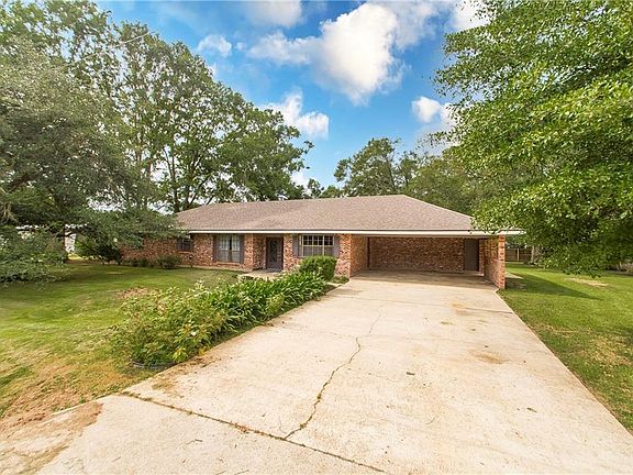 Awesome find in Tickfaw! 3 bedrooms, 2 full baths, half bath & a bonus room! Lg screened patio for extra area. Lg living rm has wood-burning fireplace & huge brick hearth w/ shiplap accent wall. Dining area w/ bay window opens to the kitchen. The kitchen has lots of cabinets & features a chalk wall & lg coffee station! Extra lg laundry rm has lots of shelving, utility sink, houses the half bath & w/ its exterior door access can be used as a mud rm. Covered patio, concrete patio & fire pit, attached carport.