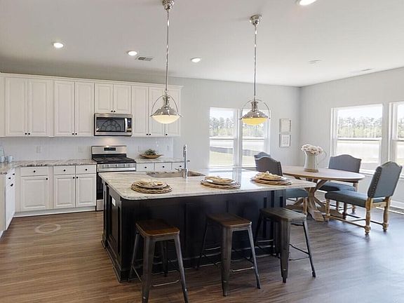Single level living steeped in today's style is what you'll find when you enter into this thoughtful floorplan in this highly sought after West Ashley NEW home neighborhood. Open main living highlighted by a gorgeous kitchen with stylish quartz island invites envy with stainless gas appliances and timeless white shaker cabinets accented by classic backsplash. Stunning plank flooring leads you to the spa style primary suite complete with tile shower, dual vanities & 2 ample walk-ins. In the front of this split floorplan, discover two additional bedrooms flanking guest bath. Walk-in laundry room offers ease. Step out back onto your 12 x 12' covered porch to your beautifully sodded lawn. Generous 2-car attached garage completes this convenient & polished home expected to complete in May.