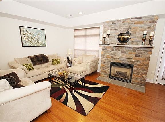 Stunning three story townhouse with loft. Upgraded kitchen with granite countertops, stainless steel appliances, ceramic tile, and breakfast nook. Open layout Hardwood floors in Living room and formal dining room, crown molding throughout and stone gas fireplace. Extra large master bedroom suite with walk in closet Master bath has dual sinks, jacuzzi tub and stall shower. Includes 2 parking spots. Close to major highways and shopping centers. 10 min walk NYC train