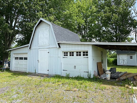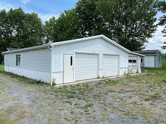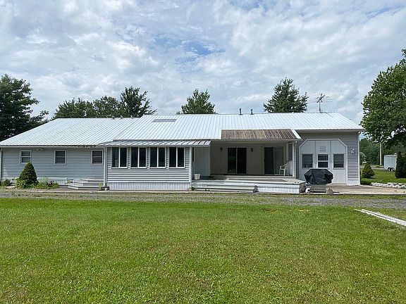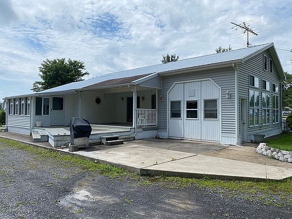 Large one story home for sale. 2600 sq ft including 400 sq ft in-law apartment. Main house has 4 bedrooms, 1.5 baths, newly updated eat in kitchen with all appliances included, formal dining room, living room, laundry room, foyer, 2 sunporches. Huge family/great room (23’ x 27’) with high ceiling and full of windows. The great room also has built-in mini refrigerator and counter space with stove top. A wonderful entertainment room for large parties or family gatherings. The in-law apartment includes 1 bedroom, 1 bath and kitchen. The house is vinyl sided and has a metal roof for a maintenance free exterior. The 1.4 acre lot includes 3 bay 40’ x 40’ garage with office space. The garage is also vinyl sided and has a metal roof. 2 story 12’ x 24’ barn with 2 car bays attached (12’ x 24’ & 10’ x 16’) and a 11’ x 16’ carport. 2 sheds plus a shed/greenhouse. This rural setting has electric, natural gas, town water, and cable/internet service available. PLEASE NOTE: The "manufactured" portion of the house is a pre-1970 mobile home. Some lenders will not approve a mortgage because of the age of the mobile home. Cash offers always considered! Seller will not hold mortgage or offer rent to own.