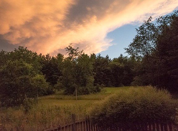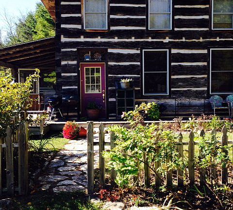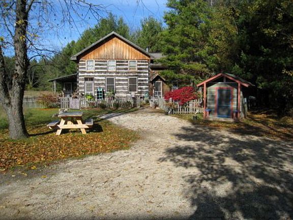 This spacious log home in a beautiful private setting offers rustic sophistication ... With a splash of FUNKY! The great room features hand-hewn beams, ash floors and a wood-burning fireplace. The bright and spacious master suite has a vaulted ceiling, skylights and a tiled master bath. The guest wing offers plenty of room for family & friends with 2 more bedrooms. And the 2nd floor studio has a separate outside entrance. There is a covered deck, and a screen porch overlooking the meadow. Enjoy an evening around the firepit. Store your cars, boat or other toys in the 3 car garage, which has unfinished space above, and one stall insulated for use as a craft room, workshop or yoga space. There is a shed, and a playhouse for the children.