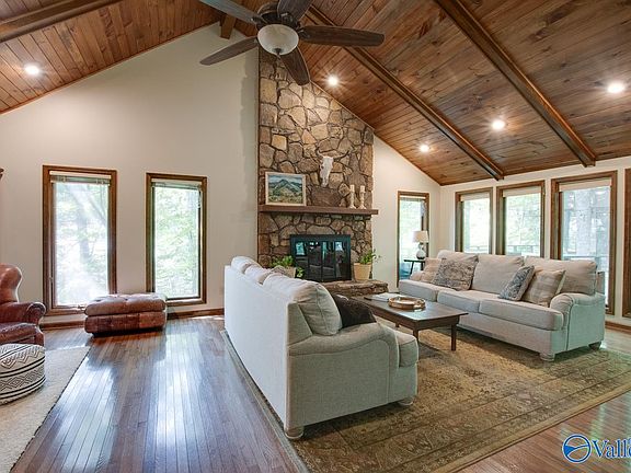 Huntsville's most amazing custom built cozy retreat with total privacy in a wooded setting. This incredible oasis has complete privacy in a park like setting. Every room has a view...... nature enthusiast's dream. The gourmet kitchen has granite countertops and SS appliances. Oversized family room with vaulted ceiling and stone fireplace. The isolated owner's suite has vaulted ceilings, large sitting area, glamour bath and huge walk in closet. The three other bedrooms are large solid wood doors and Pella windows. The back yard has a massive deck with a hot tub(remains with house), covered cabana area and lots of seating for company. Storage and an oversized two car garage.Bond Cooks