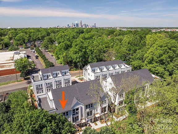 This NoDa townhome offers a 4th floor rooftop terrace & Rec room, plus a deck off the Kitchen w/ wooded views. 3rd floor has both bedrooms plus the laundry closet w/ a GE stacked washer/dryer included. Premier bath includes a large tiled shower w/ semi-frameless glass, raised-height vanity w/ quartz counters & pale grey painted cabs, plus tiled floors. Secondary bath has white cabinets, quartz counter & tiled floor. Enjoy the open plan of the 2nd floor; kitchen features quartz counters, 42" pale grey cabinets for maximum storage, LED under-cabinet lights, cabinet trash pullout, & GE SS app w/ gas range & French door fridge included, plus large stainless undermount sink. Enjoy features such as 9' ceilings throughout, 3 included ceiling fans, and modern lighting. LVP floors are throughout the 1st and 2nd floor plus 3rd floor hall and laundry, with oak treads on the stairs.