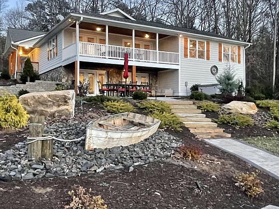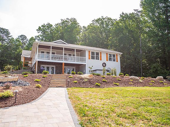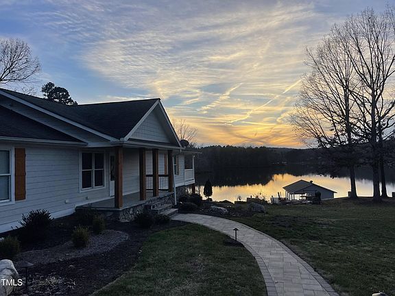 What a lot! What a view! 340 ft of shoreline! Huge yard, landscaping done by Johnny Haymore. Firepit! Patio! 3 bedrooms on the main level! 2 guest rooms (with room for all) downstairs, game room area, den area, and bathroom downstairs too! HUGE primary bedroom with wonderful views of Hyco and BIG walk in closet! Beautifully remodeled ! EVERYTHING conveys...what you see is what you get! All you will need is your swimsuit (and a boat!) ! Doubleslip boathouse! Deep water!! NO HOA!!! Concrete paved driveway! Very easy access to this house!
