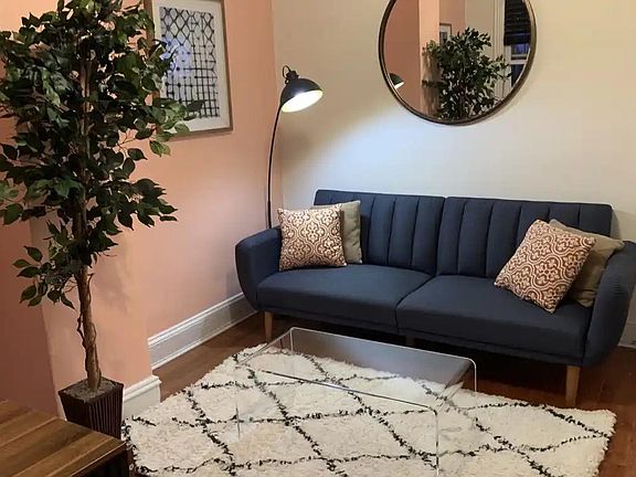 Furnished, Ground level 2BDR / 1BA apartment in 2 UNIT building available Early August 2024. Unit features include: Hardwood floors, In unit W/D, high ceilings, separate front and rear access, dishwasher, lots of extra storage spaces, central A/C, secured rear parking space and a dedicated management team to answer all tenant inquires and maintenance requests. Sorry but no Smoking or Pets. More details below. Furniture: Living room furniture (Couch that reclines into a full sized futon bed, coffee table, throw rug, reading lamp, desk that converts into 4 seat table and wall hung TV with premium cable); Bedroom furniture (Each bedroom has a new Queen sized bed, 2 end tables, 2 bedside lamps, a wall hung flat screen TV equip with streaming TV service and custom built closets). Front bedroom has carpeting and rest of unit (including rear bedroom) has hardwood flooring throughout. Nest Home Security System, front/back cameras and Smart Thermostat (control A/C and Heat, Unlock and Lock front and back doors and arm/disarm security system from your phone). Tenant is responsible for all utilities. Parking pad in the back accommodates 1 vehicle and has an electronic gate activated by garage opener. $42 credit check / application fee. One months rent is security deposit. Tenant is responsible for all utilities including cable and internet. No Smoking or Pets. $42 credit check / Application fee.