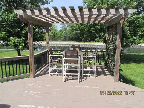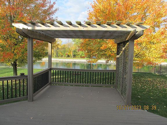 1423 Eagle Ln Marion is a 3 bedroom, 2 full baths, open kitchen and dining room...1683 Sq ft...single family house built in 2000 on a 0.28 Acre lot and located in NE Marion in Club Estates across from Elks Country Club on dead end street......all brick...vinyl trim...2 car + garage...new door opener in 2022... laminate floors in living room, dining and master....kitchen, laundry room and 2 baths are vinyl...carpet in 2 guest rooms hardly used...new blinds throughout...gas fireplace...Anderson windows and sliders in dining and master...both lead to the deck... new pergola and rebuilt huge deck....new stain and paint this summer...new hot tub with beautiful view of pond and woods...black aluminum fenced in back yard....no neighbors to south side...very private central heat and air...gas furnace... crawlspace had new perimeter drain, sump pump and new vapor barrier installed in 2020...new roof in 2012.... all new black stainless appliances in 2020.....new washer in 2021...new countertops in 2017...brick backsplash...has Direct TV and Spectrum internet/cable...AT&T landline... taxes $750 Spring and Fall...HOA $200yr possible turn-key on furnishings....negotiable 765-662-2040 home....239-821-7525 cell Email: flaholmes19@gmail.comthe deck and bakyard, hot tub