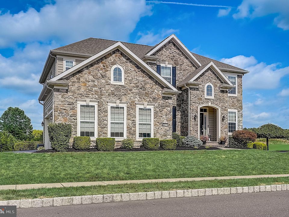 Welcome to 1423 Gabriel Lane. Overlooking the 7th hole of Heritage Creek Golf Course, this exquisite estate features 5 spacious bedrooms, 3.5 baths, and over 4,000 sq. feet of living space with exceptional detail throughout. The property's entrance is flanked by a living room on one side and a formal dining room on the other. This home’s stylish kitchen is a chef’s delight with its expansive center island, strikingly beautiful and timeless marble countertops (2021), custom cabinetry, walk-in pantry, stainless steel appliances (2021) stainless steel double oven, gas range, dishwasher and sink all replaced in 2021. Adorning the kitchen is a breakfast room draped with walls of windows allowing for an abundance of natural light and access to 2nd story Trex decking with spectacular golf course views. Adding to the ideal entertainment flow is the neighboring two-story living room with a sprawling stone floor-to-ceiling stone hearth. As you make your way upstairs, the second-floor hallway captures views of the golf course and hosts 4 bedrooms and 2 full bathrooms. Conveniently located on the second floor is the laundry room. The owner’s suite is one to savor with idyllic views, a walk-in closet with custom organization and cabinetry, and a luxurious owner’s bath spacious enough to host two separate vanities, a shower, and a soaker tub. Three additional bedrooms and a hall bath complete this floor. A recently renovated and finished walk-out lower level provides for that sought-after additional entertaining space to be enjoyed amongst yourself or house guests. This level also features a 5th bedroom with a full bathroom. Ample and oversized storage room, with the newly replaced HVAC unit. Step outside through your sliding glass doors onto this brand new (2020) outdoor oasis. Relish in the breathtaking sunsets overlooking the fairway while cooking in the outdoor kitchen. Continue your time outside relaxing under the pergola, enjoying the warmth and ambiance of the gas fireplace. This paver patio and walkways feature LED lighting pavers. This property expands beyond its fully fenced-in yard. This is only one of five properties with a side entrance two car garage and neighboring property only to one side. The Heritage Creek Community offers maintenance-free living with lawn maintenance, and snow & trash removal while conveniently located minutes from shopping, parks, playgrounds, restaurants, major commuting routes, & within a Blue Ribbon Central Bucks School District.