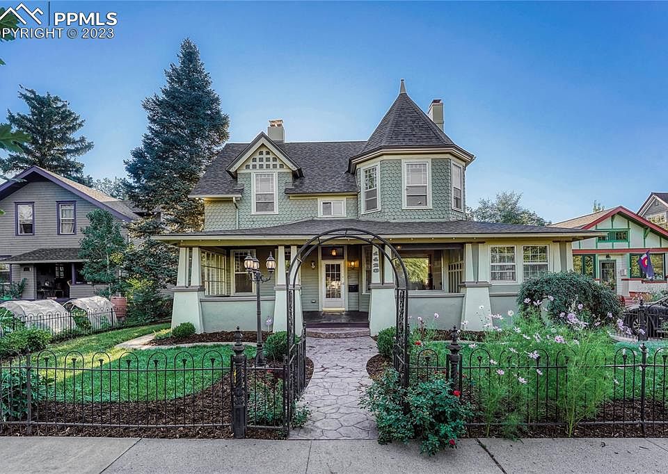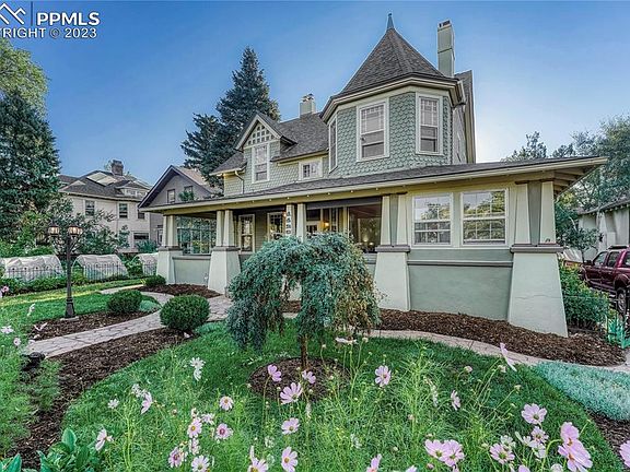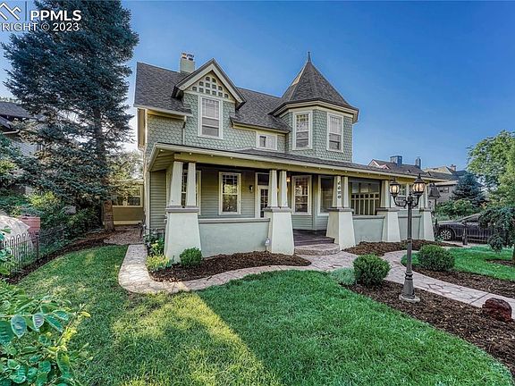 Charming Victorian home in Old North End! Completely refreshed with refinished hardwood floors, new paint and updates throughout. New kitchen granite and back splash. Sitting nook with wood burning stove & walk out to back deck and huge yard. Home has a Grand entry with a delightful covered front porch, dramatic stair case and old world charm. Refinished and new hardwood throughout the home! Formal Living room with tiled wood burning fireplace, original finishes & pocket doors. Sliding doors open from hearth room to a formal dining room. Secondary sitting/family room adorned with an original barber wall mirrored wall piece. Ideal work-from-home residence. Check out the main floor sunroom...Great for a bright and airy office space. Also complete with a main level bedroom/office/kid play space. Two separate staircases lead to the upper level with an extra wide hallway that runs the length of the home. Primary bedroom serves as a suite with its sitting area/closet and 3/4 bathroom updated with travertine floors, granite countertops & cherry cabinets. Upper level Laundry room with newer washer and dryer included & built-in shelving. Secondary updated 3/4 bath on the second floor to service the other bedrooms plus updated 3/4 bath just down the back stairs on the main level. Basement level has a finished huge room with new flooring, texture/paint and built in cabinets. Perfect for movie room, workshop/studio or secondary family room. Fully covered composite deck in the rear of the home with 32'x18' stamped concrete patio. Beautifully landscaped front & back yard with fully fenced areas. This home is true to the Victorian Era but with modern elegance! All services have been updated to modern day use. 2-car detached garage, carport & workshop with additional stall that can easily be converted to a 3rd car garage or storage. Ideal for living and working with easy access to downtown, Colorado College and I-25. Come see this gem today!