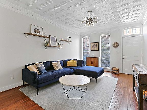 This grand Federal Hill property will exceed your expectations with tasteful updates that blend well with the meticulously maintained original details of this home, with the added convenience of GARAGE PARKING. Upon entering the 16 foot wide front of the home, youâll be greeted by hardwood floors, dentil crown molding, and original tin ceiling in the living room. The living room is long enough to have a TV area and separate sitting area near the fireplace, which is wrapped in marble and brass, and topped with a reclaimed wood mantel. This cozy space is perfect for reading and unwinding with a glass of wine. The dining room provides space for seating 6 or more, and the hardwood floors, shadow boxes, dentil crown molding, and chair rails add a sense of elegance that is sure to impress guests. The large kitchen features an excess of granite counterspace, including an island with a breakfast bar. Light is bountiful with 2 windows, recessed lights, and 2 pendant lights, which is reflected off the marble backsplash and the plentiful white kitchen cabinets. Off the rear of the home is a half bathroom and a mudroom. The rear yard and patio is shaded by a mature birch tree. This is one of the few properties in Federal Hill that affords you both garage parking and a rear outdoor space! The garage has power so an overhead garage door lift has been installed for added convenience. The space is perfect for one vehicle plus storage or a tight fit for 2 compact vehicles. Upstairs features a rear primary suite with 2 closets, wood ceiling, ensuite bathroom, and a private balcony overlooking the backyard. The wide hallway can be used as an office and exercise area. The hall bathroom and laundry room are located off the second floor hallway, just outside the large front bedroom. The 3rd floor features a massive bedroom with a vaulted ceiling, 2 closets, and an ensuite bathroom. The unfinished basement provides excellent storage. This home has so many upgrades: the roof replaced in 2021 (upper level resurfaced the same year), Dual zone HVAC units replaced in 2018 and 2020, hybrid water heater installed 2021, basement waterproofing 2022, fireplace installed in 2018, several new light fixtures installed since 2018, and many upgrades were made in the kitchen and bathrooms.