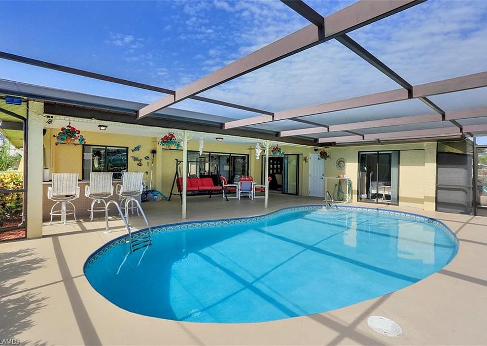 Meticulously kept Cape Coral pool home with brand-new roof and solar panels for the pool! Large fenced in back yard, updated bathrooms, bright and airy interior and ideal outdoor-living space are just a few things that make this home absolutely amazing! The pool is the perfect place to enjoy the Southwest Florida life! With an outdoor kitchen and abundant amount of covered/uncovered space- you can spend your time hosting and entertaining friends and family. Whether you are the first time home owner or a growing family, this beautiful home is ready to be enjoyed!