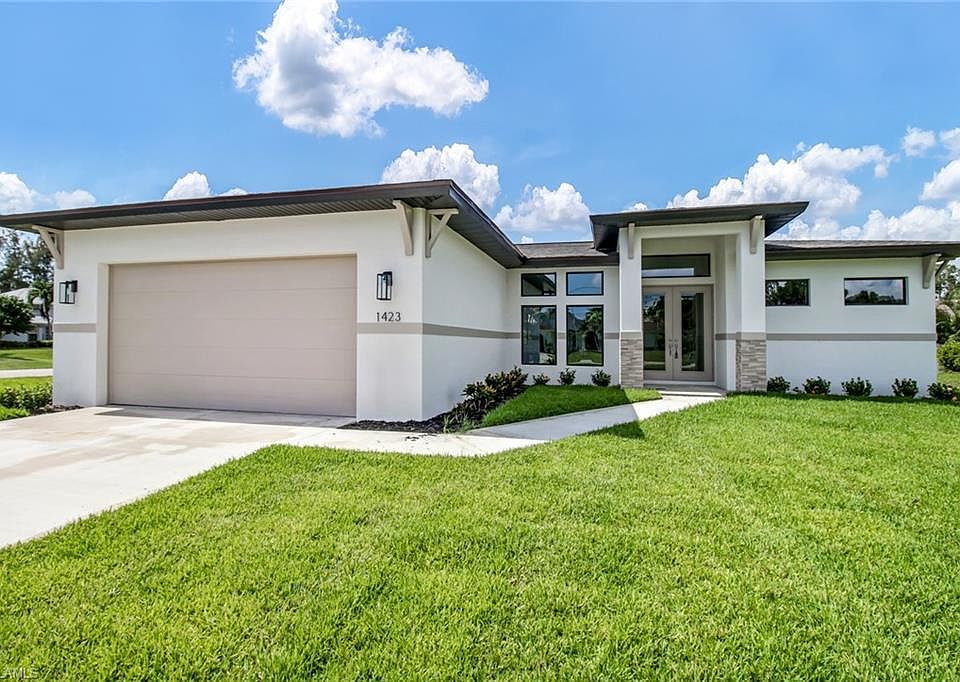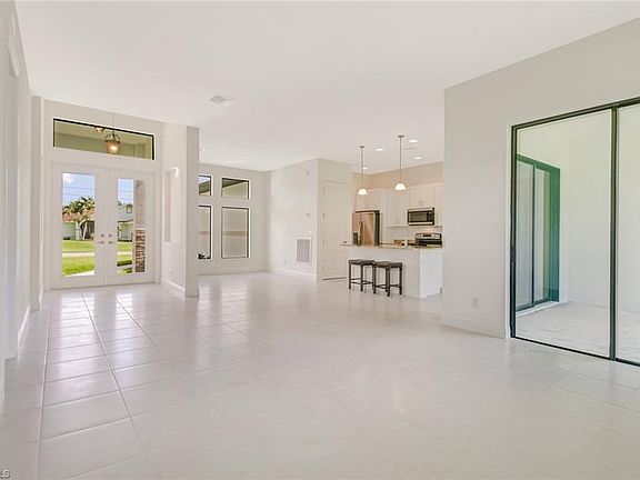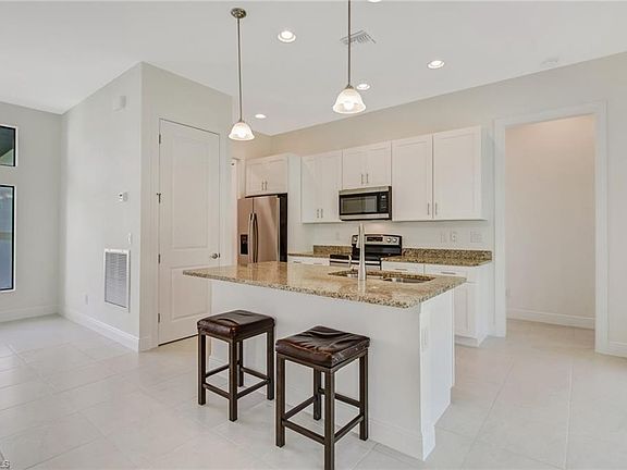 The open and spacious split floor plan features three bedrooms and two baths. This home offers significant curb appeal. When you pull up the long driveway you will immediately notice the 14 entry with stylish stoned columns and contemporary lighting. As you walk through the glass double door entry you are immersed in bright natural light from the many upgraded windows surrounding the main living space. 10 ceilings and 8 doors throughout this home. The open kitchen has granite counter tops with a walk-up bar. Solid wood white cabinets with upgraded 42 upper cabinets with soft closing drawers. Under mount sinks, and stunning stainless steel appliances. Upgraded contemporary tile in the main living areas with plush carpeting in the bedrooms. The master bath is loaded with upgrades including a luxurious free standing soaker tub and separate walk-in shower. His and her closets, double sinks. The exterior boasts dimensional shingles and a lush landscape package with a 4-zone irrigation system. The lanai area provides ample outdoor space. Plenty of room in the spacious backyard for your dream pool and entertaining.