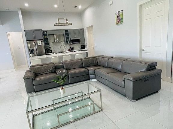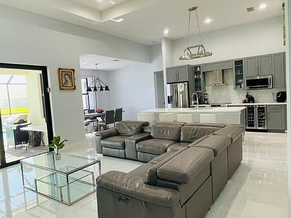 Beautiful 4/3/2 pool house on freshwater canal, great screen enclosures pool with outdoor kitchen, pool bath, open concept layout, stainless steel appliances, impact windows and doors, driveway, lanai, and pool area of paved, full controlled led ceiling fans, all lights led type, solid wood self- closing cabinets, coarse countertops, floratan grass with sprinklers auto, 12X28 pool, 8' interior and exterior doors, 11' to 12' high ceiling the living area and 9'4" on bedrooms.