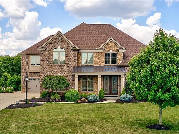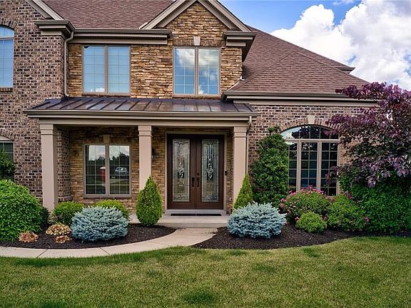 Welcome to this stately home in the North Allegheny School District. Greet guests at the covered front porch and welcome them into the two-story foyer illuminated by beveled glass double doors. An open layout with fresh neutral paint and modern lighting create a harmonious interior. Crown molding, wainscotting, built-ins, and tray ceilings are features of the office and formal dining room. The kitchen has been recently updated with Quartz counters, pendant lighting over the island, new appliances including a Thermador stove, and a built-in KitchenAid refrigerator. A stone fireplace is the focal point of the great room. Upstairs you will find large bedrooms including the master bedroom with sitting area, impressive walk-in closet, and spa-like bath. The basement wet bar has a subzero fridge drawers and plentiful entertaining space! Outdoor space boasts a dry deck with fans and a lower level patio with lighting. You will enjoy the convenient location of the Scarlett Ridge neighborhood.