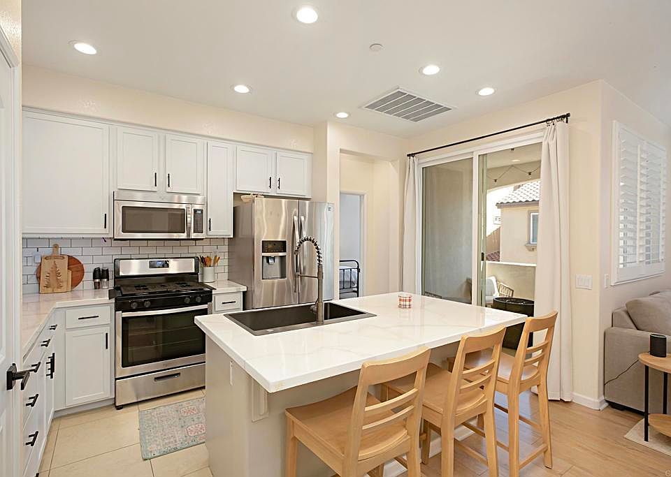 Welcome home to your beautifully renovated 2 bedroom/2 full bathroom townhome located in the heart of Chula Vista, surrounded by beautiful parks, playgrounds, biking trails and recreational facilities. This corner gem has undergone $15,000 in renovations, making it an ideal choice for first-time homebuyers, investors, or those looking to downsize alike. Enjoy plenty of natural light throughout the spacious layout. The open floorplan features a modern kitchen complete with stunning quartz countertops, plenty of cabinet space and island-ideal for cooking while entertaining. Comes equipped with a full-size washer and dryer for your convenience. Downstairs is one car garage with epoxy floors, providing durability and style. Situated near great shopping centers, award-winning schools and easy access to major freeways. This newer development offers a perfect blend of comfort and convenience. Don't miss out on this opportunity to own a charming home in a vibrant community! Priced to sell, this jewel will go quickly!