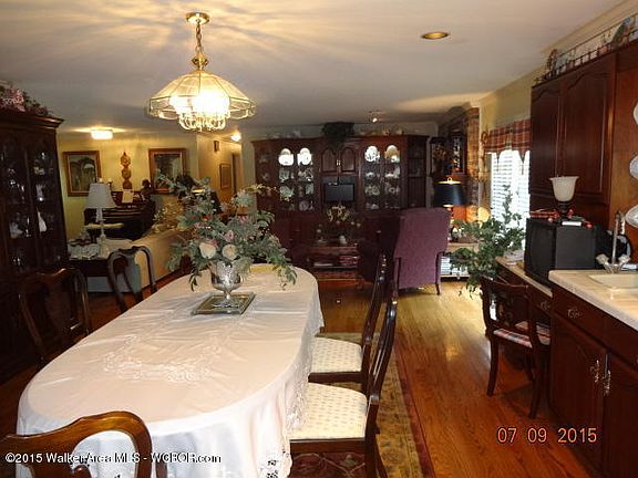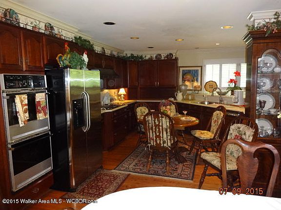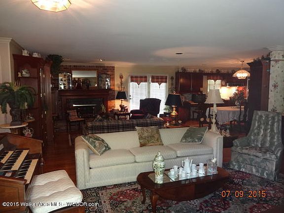 Brick and vinyl exterior. 4 BR, 3 bath. Flooring includes carpet, tile, vinyl, and hardwood. Great room style. Very large kitchen with deluxe cherry cabinets, 2 refrigerators, gas and electric grill. Very spacious and open home featuring fireplace, built in shelves, and recessed lighting. Add on built in 1985, includes bedroom that could be transitioned into a nice sunroom. Two water heaters.