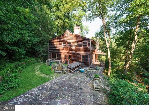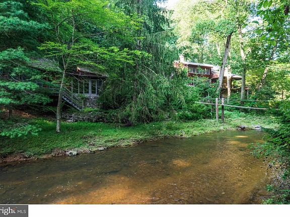 Private, park like sanctuary on almost twenty pristine acres on the unspoiled French Creek, with trout in the stream, a two- acre pond at its side with a pond house and fat bass eager to be fished. Ten of these acres are a deeply wooded hillside that shelters the house from virtually all noise ? all you will hear are bird songs and sounds from the bubbling, gurgling brook. Here you will find country living at its best with offices, separate living spaces with their own kitchens, and a spacious work area looking out at the wooded creek that awaits a creative mind. In the main house there are 3-4 bedrooms with 2.5 baths. Enjoy a fully updated kitchen with breakfast bar seating, custom cabinets and wonderful light off which you'll find a light filled dining area with fireplace and full wall of windows! Cozy family room & bedroom/workout room complete the main floor of the home. Upstairs find the master suite and 2nd bedroom. The full height lower level features an additional bedroom suite with full bath and kitchen area, office & family room. From the main and lower level, decks and tiered patios abound to enjoy the sound of French Creek, views and natural environment surrounding you. Large flagstone patio off the kitchen leads you to the cottage(currently used as meeting room and light filled office) and also features a full bath & kitchenette so can be used as a guest house or in-law suite. From the patio step across the 70 foot hanging/swinging bridge that provides access to the two-acre pond and pond house & the serenity of a rustic walking path. Much of the land in in the surrounding community is held in trust so that this secluded, green corner of Warwick Township and Chester County will remain quietly beautiful in perpetuity. Separate garage and storage building and additional outbuilding are found on the property. This is amazing opportunity to be within easy commute of all major roadways and amenities while still enjoying a truly one-of-a-kind living environment! BRAND NEW SEPTIC being installed by Sellers!
