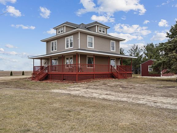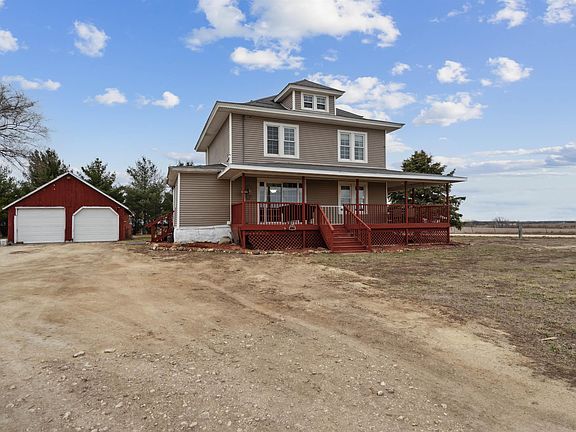 Escape to the peaceful countryside with this acreage south of Lamont within the Starmont School District. Sitting on 2.69 acres with a scenic windbreak, a greenhouse and a 36x36 steel building with a lean-to and fenced cattle lot for all your gardening and agricultural pursuits. There's also a handy 2-stall detached garage. Step inside to discover a delightful farmhouse-style ambiance accentuated by a crisp white kitchen. The dining room features a built-in china cupboard, while colonnades divide it from the spacious living room, perfect for family gatherings. Plus, you'll find main floor laundry and a bedroom for added convenience. Head upstairs to discover four more bedrooms and a full bath. Unwind from long days on the delightful wrap-around porch. Recent updates include newer furnaces and central air unit. There is bonus electric baseboard heat in bedrooms for room control as well. There's also an on-demand water heater and a reverse osmosis water system.